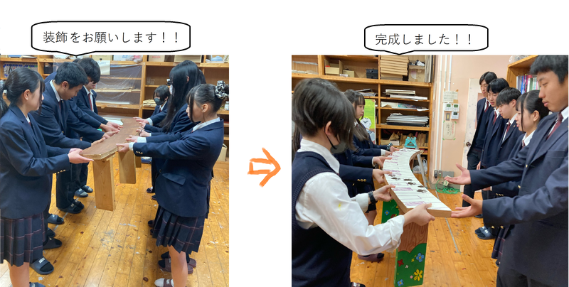 本年度も電子機械科と普通科芸術コースのコラボベンチが設置されました