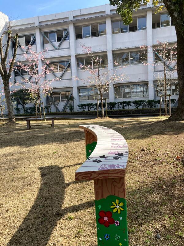 芸術コースの3年生にデザインしてもらったアーチ型のベンチが