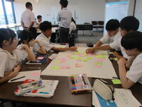午後は水俣市役所に移動し、水俣市をより良くするためのワークショップに取り組みました。それぞれの班で、水俣市を盛り上げるための案を出し合い、協議しました。産学官が連携した、まさに「協働的な学び」となりました。