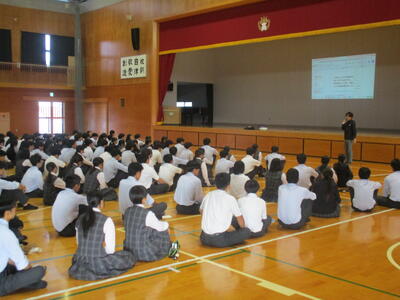 今回の内容は、進路指導主事からは、大盛況だった文化祭からの切り替え、3年生の進路状況、11月模試・進路マップに向けた話、3年生担任からは、受験最前線で指導している立場から思うこと等の話の2本立てでした。みな真剣な面持ちで聞いていました。