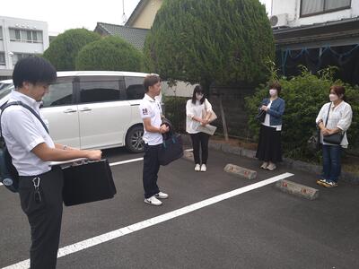 10月5日(木)に、保護者進路研修のため、企業見学会を行いました。本校に集合し、山下教頭、小嶋会長からのあいさつのあと、自己紹介を行い、バスに乗って出発しました。