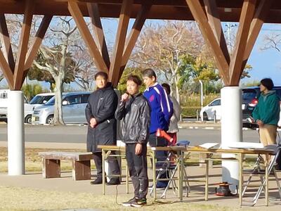 大会後、生徒たちと一緒に完走した小嶋会長からは、お楽しみ抽選会があり、6名の生徒が当選し、プレゼントを受け取りました。