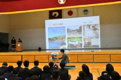 4月10日、本校体育館にて「探究活動報告会」を開催しました。生徒たちが1年かけて取り組んできた、世界や地域と深くつながる3つの活動について、その成果と情熱を全校生徒や関係者の皆様へ届ける貴重な時間となりました。