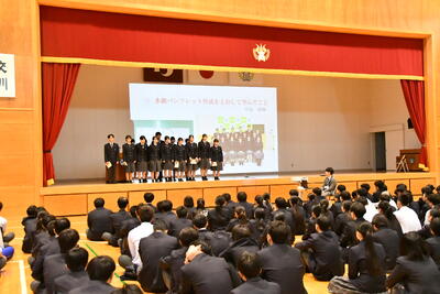 国立水俣病総合研究センターと協働で作成したパンフレットについて、編集長の田端さんらが報告しました。水銀や水俣条約について深く学び、一冊の形にまとめる過程で得た「正しく伝える意義」は、次代を担う生徒たちにとって大きな財産となりました。