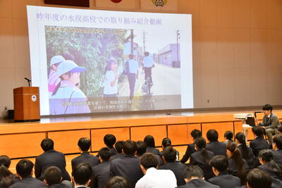 昨年度の活動が実り、令和8年3月に、しらぬひ風景海道が九州風景海道として国土交通省により登録されました。本事業はパートナーシップ団体である熊本大学や建設技術研究所との連携で行われました。報告では、水俣のさわやかな風景の中で生き生きと活動する生徒たちの映像が上映され、担当教員から事業についての詳しい説明がありました。活動はActⅡとして次のステージに移行し、今年度も継続して行われます。地域が好きな生徒やまちづくりや公務員、大学生との協働に興味がある生徒へ向けて、今年度の参加も広く呼びかけられました。今後の活躍にも期待してください。