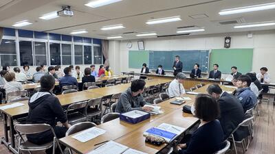 続く拡大役員会では、校長より新年度のスローガン「探究力で未来を拓き、発信力で夢(願い)と社会をつなぐ生徒の育成」と、合言葉「Move Forward! 水高」が紹介されました。会務報告や新役員になられる予定の方々の自己紹介など、が行われ、各種委員会のメンバーが決定しました。その後は各委員会に分かれ、自己紹介や今年度の活動計画について活発な話し合いが行われました。