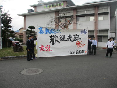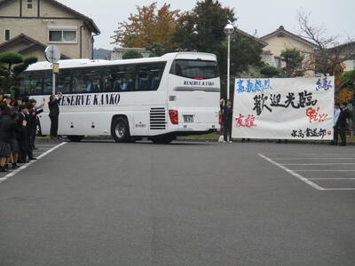 そこには、朝の歓迎会で書道部と吹奏楽部が作り上げた、あの巨大な書の作品も展示! 「私たちの想い、届いたかな?」 そんな気持ちを込めて、バスが見えなくなるまで全員で手を振り続けました。