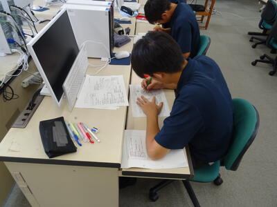 建築科と聞くと、木材を加工したり図面を描いたりする姿を想像する人が多いかもしれません。もちろんそれらも大切な技術ですが、今の建築業界で求められているスキルのひとつ、それが「ICT活用能力」です。現在、建築科1年生は「パソコン利用技術検定」の合格に向けて、熱心に取り組んでいます。