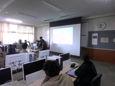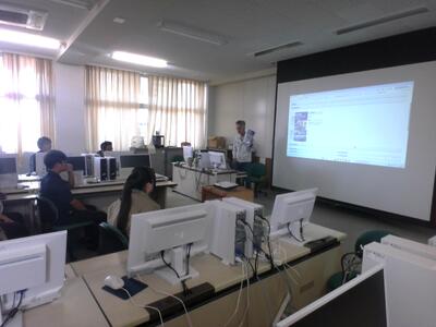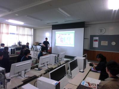 歓迎会のあとは、教室に分かれての授業交流です。 特進コースや半導体情報科のクラスに嘉義高校の生徒さんを招き、一緒に机を並べました。