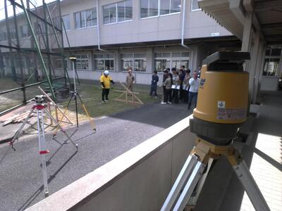 屋外実習では、株式会社KAWATSUの技術者の方々から従来の測量と最新のデジタル測量を比較体験!生徒は最新技術を使えば、作業が大幅に効率化され、ヒューマンエラーも防止できることを肌で感じました。