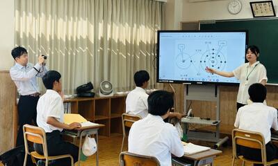 授業の中では、前の週に行った企業見学の事後指導や半導体の構造・性質についての授業が行われました。