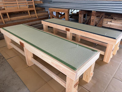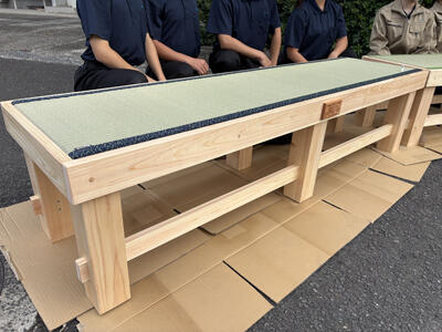 この上がり台は、地元企業様からの木材・合板の提供、八代のイグサ、地元の畳店による製作、そして高校生の確かな技術という、地域全体の力が集結して生まれる「おもてなしの心」の結晶です。