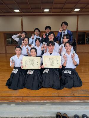 「令和7年度全国高等学校総合体育大会(インターハイ)カヌー競技」において、学校対抗男子総合1位(男子総合優勝)の本校カヌー部生徒4名の功績を称え、水俣市より水俣高校カヌー部へ「功績章」を授与されました。