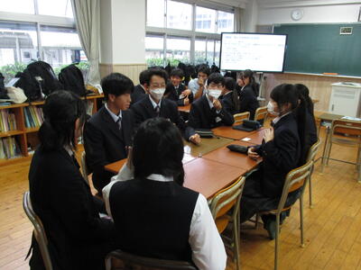 普通科特進コース1・2年では、英語のことわざを使った「かるた遊び」や、英語でのディスカッションに挑戦。「英語が飛び交う」教室の中で、生徒たちはジェスチャーも交えながら必死にコミュニケーションをとっていました。 「もっと英語を勉強して、自分の言葉で想いを伝えられるようになりたい!」 参加した生徒からは、そんな熱い感想が聞かれました。