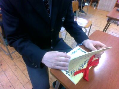 先日、2週にわたって開催した水俣第二小学校6年生との「卒業記念品制作ワークショップ」。その活動を終えた小学生の皆さんから、心温まるお礼のメッセージが届きました。実習棟で共に汗を流した建築科1年生全員で、届いた手紙を一枚一枚大切に読みました。そこには、「説明がすごく分かりやすくて、初めての作業でも安心できた」「道具を使うのは少し怖かったけれど、優しく教えてくれたから安全に楽しく作れた」といった喜びの声がありました。また、「自分たちが小学校に残すものを、自分たちの手で形にできて嬉しい」という達成感や、中には「将来、水俣高校の建築科に入りたい」という、未来の建築技術者を予感させる力強い言葉もあり、教室は温かい感動に包まれました。