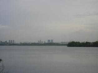 Sungei Buloh Wetland 右手前がシンガポール、左奥がマレーシア