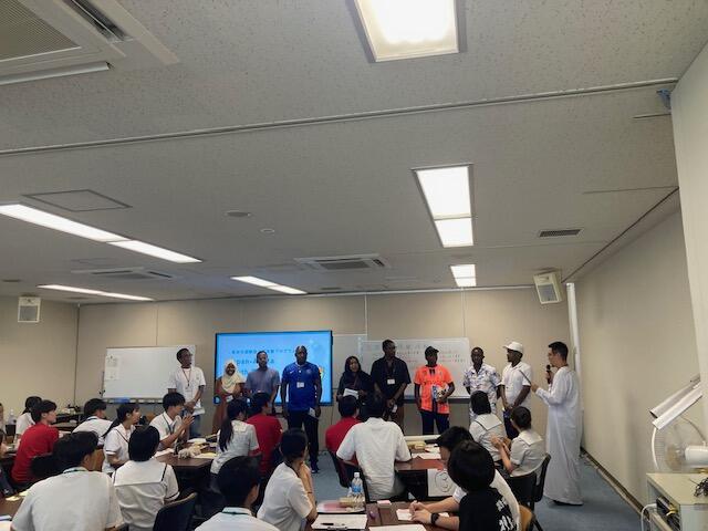 また、その後アフリカを中心とした国々からJICA研修員の方が9名参加され、ユースキャンプが行われました。高校生たちは英語で交流を楽しみ、水高生4名も水俣高校でこれまで国際交流を通じて培ってきた力をいかんなく発揮し、キラキラとした表情でとても楽しそうに会話をしていました✨️。物怖じせずに堂々と英語で表現している姿は素晴らしかったです。