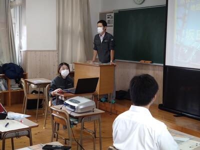 その中で、今年の3月に本校を卒業し、地元建設会社に就職したOGが社長さんと一緒に来てくれ、社長さんのプレゼンのサポートや生徒からの質問に答えてくれました。もう立派な社会人です。生徒たちは、顔も知る卒業生を間近で見て、進路に向けての意識がさらに高まったのではないでしょうか。