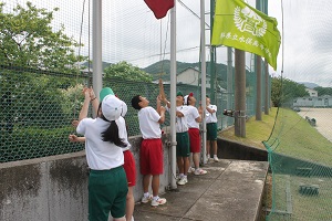 国旗掲揚練習 ラジオ体操第二 各団席の確認