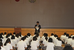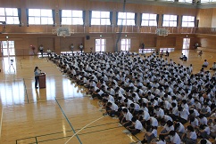 15日(水)に校外生活に関する講話が行われました。熊本県水俣警察署より講師をお招きし、交通課の方より、交通安全について、生活安全課の方より、薬物乱用防止および携帯電話についてお話をいただきました。