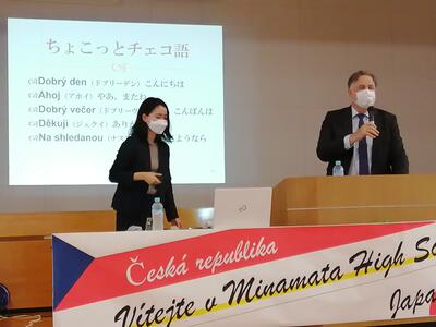 11月8日(月)にEU出張講義として、チェコ共和国大使館の特命全権大使であるマルチン・トムチョ大使と通訳の方が来校され、EUやチェコ共和国について講演をしていただきました。EUやチェコ共和国のことを写真や動画で詳しく説明していただき、とても興味深い内容でした。また、大使の話す生のチェコ語もとても新鮮でした!