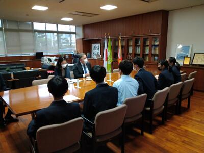 講演会の最後には内容に関する○×クイズもあり、生徒たちも楽しんで参加していました♪また、生徒たちからは「チェコでのジェンダー平等の取組」や「EUのメリット・デメリット」等に関する質問がたくさんあり、講演会後も校長室にて大使に直接質問をした生徒もおりました!このような素晴らしい機会をいただけて本当に感謝しております!