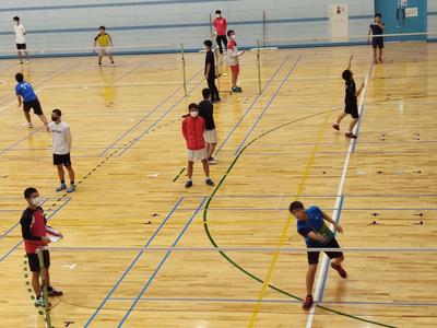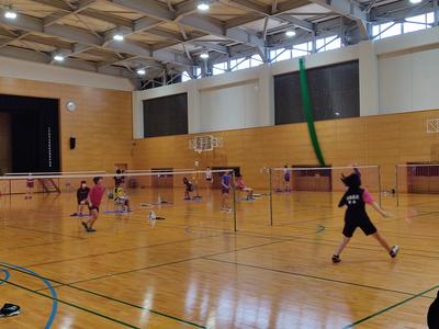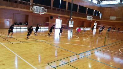 まずは、ウォーミングアップにアップダッシュ!この後、6コート全面で試合形式などが出来ました。