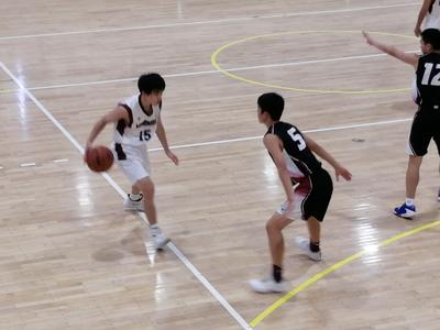 前半は、どちらも譲らず取って取られてのシーソーゲームに。3ピリでは相手のファウルが重なり、こちらにチャンスが巡ってきます。フリースローの1点を確実に決め、少しずつ点差をつめます。4ピリでこちらが流れをつかみ、シュートが入って勝利しました!