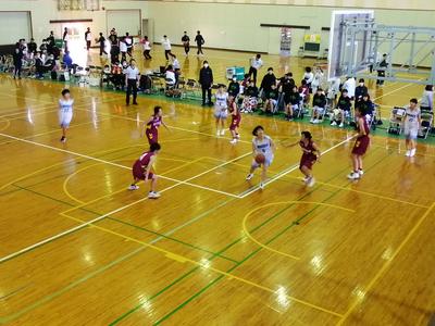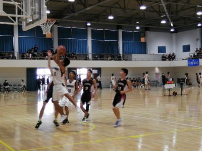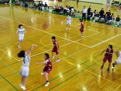 一回戦の悔しさをバネに、前半はディフェンス重視の試合展開を見せます。相手の主力選手にボールを持たせないよう、積極的にパスカットして流れをつかみました。後半は2年生選手の3Pシュートが多く決まり勢いをつけます。積極的に相手のボールを奪い速攻を出して、20点差離して勝利しました。