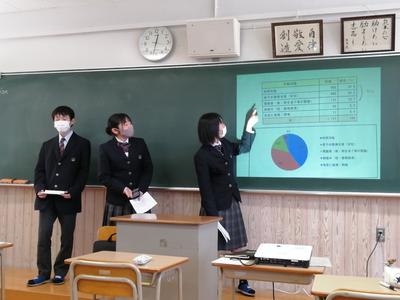 3年普通科特進コースの授業では、プレゼンテーション活動をしています。SGH活動で調査した内容をもとに、水俣市への提案を考えています!約2年間、SGH活動で様々な調査研究をしてきたので、活発に議論ができています!さすがです!