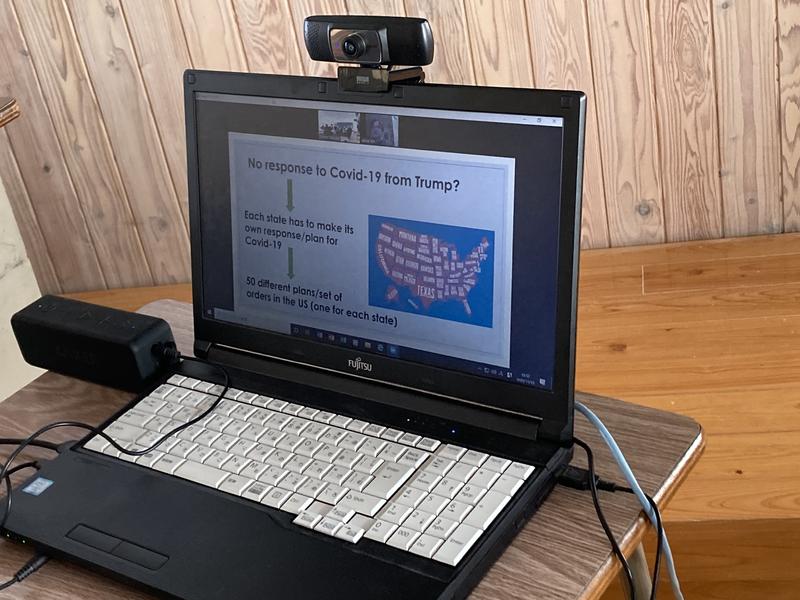 Zoom(オンライン会議システム)と州立モンタナ大学のMoodle(オンライン学習プログラム)を活用したオリエンテーションの様子