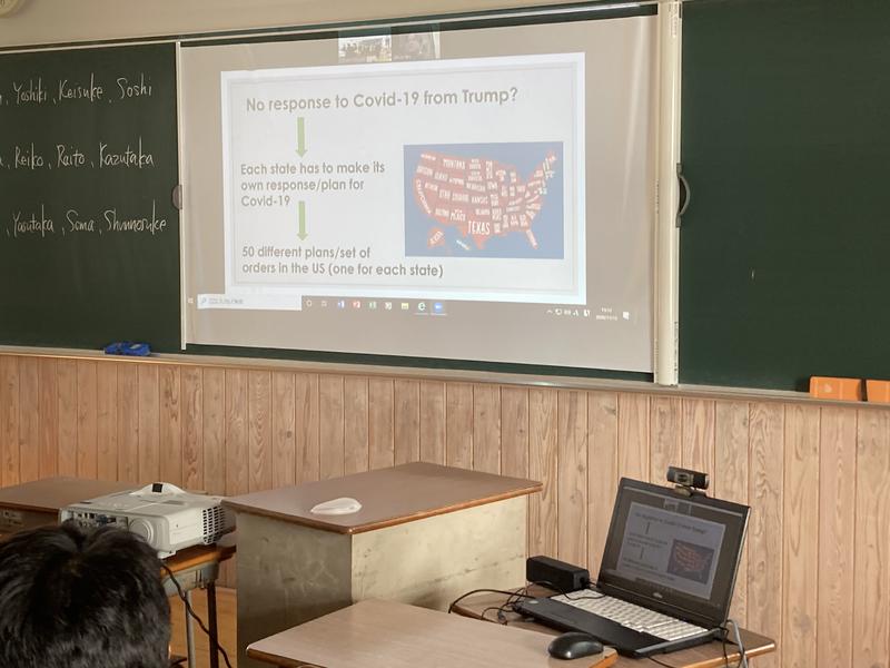 このコロナ禍で今年度のSGH活動での海外研修はすべて中止となってしまっていました。そこで、熊本県と姉妹都市関係があるアメリカ・モンタナ州の州立モンタナ大学の先生や学生とのオンライン学習会を企画し、ついにそのプログラムが始まりました。