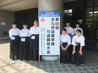 7/6(土)にSAGAサンライズパーク弓道場で開催された九州総体に参加しました。団体戦として初めて臨んだ九州大会。独特の緊張感でなかなか力を発揮することができず、上位8チームで行われる決勝トーナメントに進出することはできませんでした。この悔しさを晴らすべく、来月都城市で行われるインターハイに向けて練習を頑張りたいと思います。これからも応援よろしくお願いします。