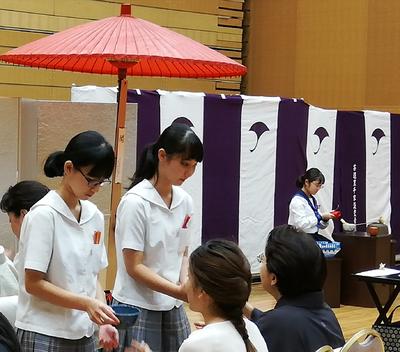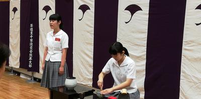 7月14日(日)に第31回裏千家学校茶道合同茶会が、ホテル熊本テルサで開催されました。水俣高校茶華道部からは、2年生5人が参加しました。多くの茶道の先生が見守る中、緊張しながらも、立派にお点前を披露してきました。