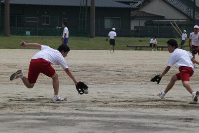 女子はバレー、男子はソフトボールをしましたが、午後からは土砂降りにより男子の決勝を行うことができませんでした。