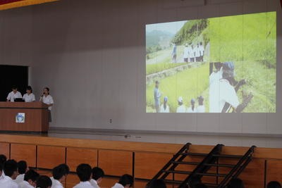 終業式の後半では、商業科生徒による研究発表、生徒指導部講話がありました。生徒発表は普段はかかることの無い他の科の取り組みなど知れる良い機会になると思います。是非刺激をもらい自身のこれからの学校生活を充実したものにしてほしいと思います。