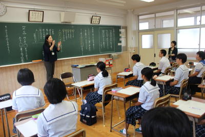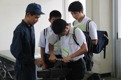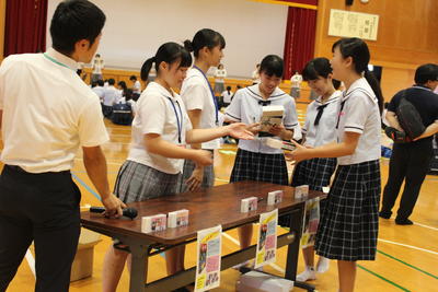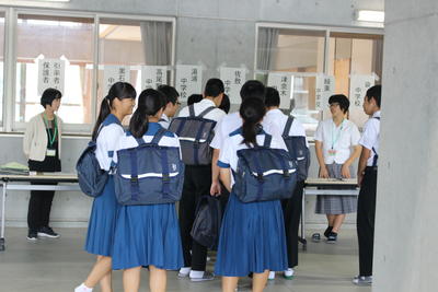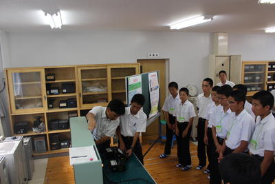 朝からの土砂降りが心配されましたが、なんとか天気も回復して、無事に1日を終えることができました。中学生たちは、普通科の発展的な授業だけでなく、商業科、機械科、電気建築システム科の授業では、本校生徒のアドバイスのもと専門的な機械や道具などを使用して授業に参加するなど刺激を受けた場面もあったようです。