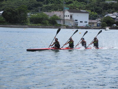 令和7年7月27日(日)に水俣川で開催された、第50回記念みなまた競り舟大会に本校カヌー部はボランティア参加しました。