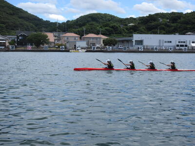 台湾チームが参戦など盛り上がる大会となりましたが、大会の決勝前には男子と女子のカヤックフォアをカヌー部の活動のデモンストレーションとして公開し、観客から多くの声援をいただきました。