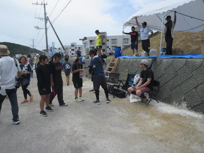 午前の夏GAKUが終了後の参加で半日のみの参加でしたが、作業は屋内からの泥出し、その泥を土嚢袋に入れる作業と浸水した小屋の解体、ごみ出しと多岐にわたりました。