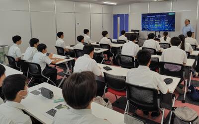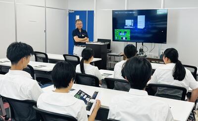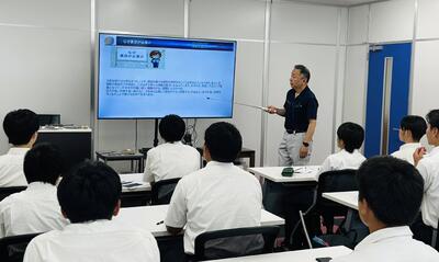今回はアスカインデックス様にお伺いし、「半導体の基本」について講義していただきました。これまでの授業で半導体に関する基礎知識を身に付けていた生徒たちは、積極的に質問をしたり、講師の問いかけに答えたりと、とても活発な研修となりました。