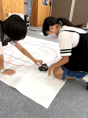 今回は、水俣高校電気建築システム科電気コースの1,2年生が先生役となり、マンツーマンで小学生に教えましたが、初めて教える高校生ばかりで、最初はぎこちなくスタートしました。しかし、途中からは小学生のやる気と希望どおりに動かないロボットカーを動かすため、熱心に教えていました。