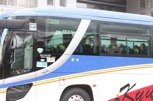 一部生徒は芦北振興局と津奈木温泉色彩で途中下車します。保護者の車送迎については エコパーク スポーツの森 北側駐車場となっています。本校敷地内と本校付近での送迎はご遠慮ください。ご協力のほどよろしくお願いいたします。