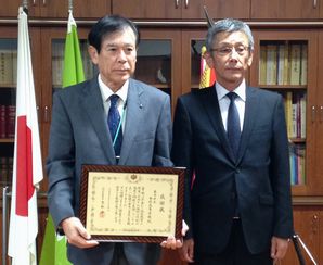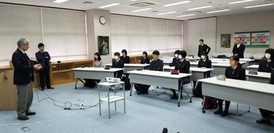 3月20日(水)にみなまたエコタウン協議会が作成したDVDの贈呈式が校長室で執り行われました。本校のSGH事業の一環で、昨年度にみなまたエコタウンについて調査研究を行った2年生14名が、今年度は「環境ビジネス」をテーマにグループ研究をすすめてきました。その過程で協議会と数回にわたって協議を行い、DVD制作に関わってきました。