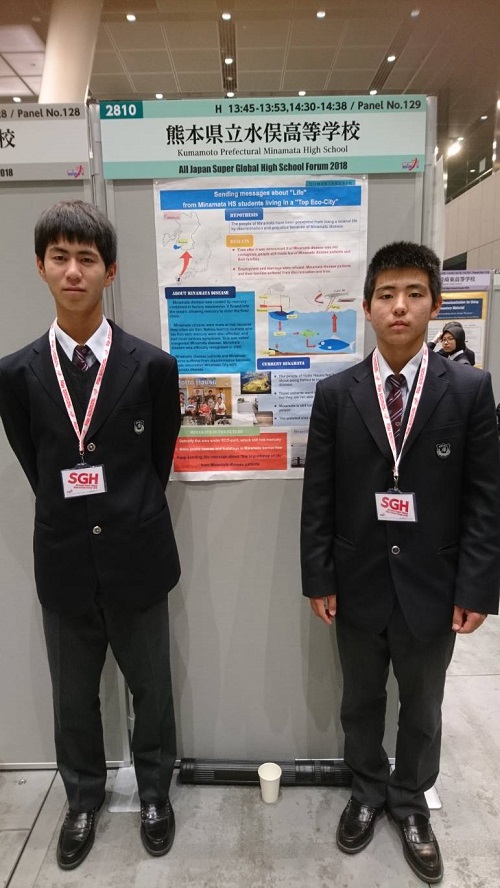 午前中は英語で環境についてのディスカッションがあり、午後は本校のSGH活動で調査した水俣の過去・現在・未来についてまとめたポスターを英語で発表しました。