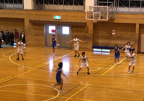 女子の試合結果です。女子は怪我でスタートメンバーが2名欠けた状態で試合をどこまでやれるかが課題となる久しぶりの実戦でした。男子同様に全勝しましたが、1試合目は立ち上がりからシュートが決まらず苦戦しました。4試合目では、冬合宿の練習試合で快勝している相手に一進一退の攻防で手に汗を握る試合となりましたが、セットプレイやゴール下での連携プレーが上手く決まり、勝利することができました。また、試合の合間には連携について話し合う姿が見られ、自分たちで試合を勝利に導こうとしていました。また、試合に出場したメンバー全員が奮闘し、スタートメンバー以外のメンバーの成長が見ることができ、嬉しさを感じました。