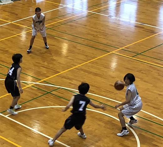女子は水俣高校体育館で八代東高校と鹿児島県の野田女子高校と練習試合でした。八代東高校との練習試合はこれで3度目であり、野田女子高校は建四郎杯以来の2度目でした。どちらの試合でもリードする場面を作ることができ、チームの課題解決に一歩ずつ前に進んでいるように見えました。試合の合間には、生徒同士で状況に合わせたフォーメーションの確認や積極的に情報交換する姿、自分たちでレベルの高いバスケットをやろうという意識が見られました。
