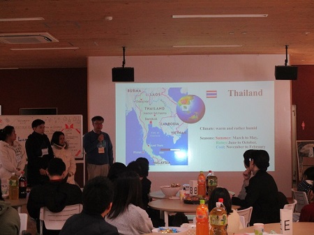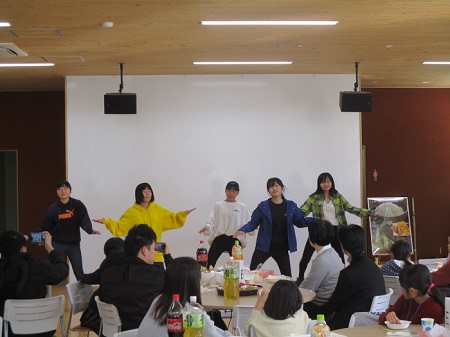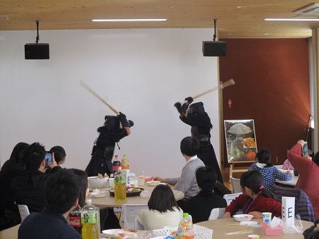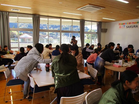 「さくらサイエンスプラン水俣研修」とは、水俣環境アカデミアが主催で、アジア地域の青少年を水俣市に誘致し、水俣の教訓と地域の現状及び課題を理解し、地域社会の持続可能性を考えることをテーマとして、国立研究開発法人科学技術振興機構(JST)の「さくらサイエンスプラン」に応募し、採択されたことにより実施するものです。この研修では、来日経験のない台湾、シンガポール及びタイの大学院生が水俣を訪問し、8日間の研修を受けます。ランチミーティングはその一環で、本校生徒10名に加え、ホストファミリーなどを含め、総勢約50名が参加しました。台湾、シンガポール、タイの学生が自国について紹介したり、本校生徒が剣道の形やダンスを披露したりするなど、それぞれの文化を学び、ランチでは英語を交えながら意見交換をするなど、それぞれにとって非常に刺激的な会になりました。