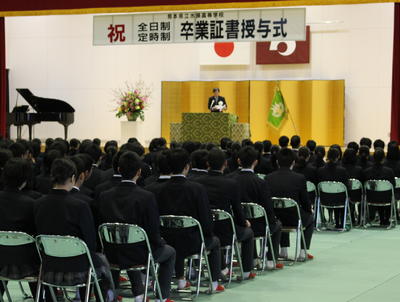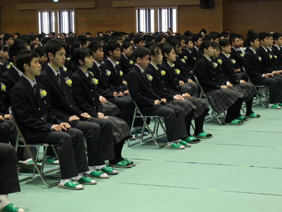 本日、本校体育館にて入学式を行いました。緊張した趣で式に臨んだ一年生でしたが、これからの新しい生活を楽しみにもしている様子でした。校長先生の講話や来賓祝辞もしっかり話を聞き、高校生になった実感を感じているようでした。