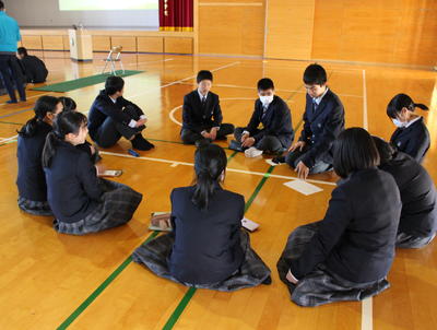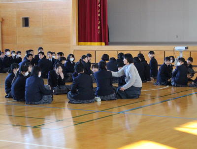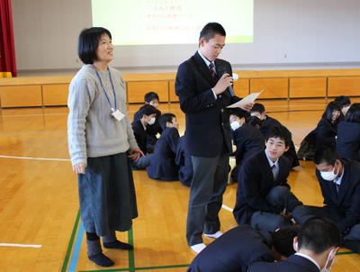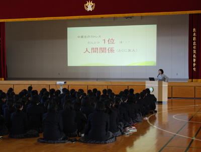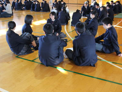 3月13日(水)、5限目に1年生、6限目2年生を対象とした人権教育LHRを水俣高校体育館で行いました。本校のスクールカウンセラーの先生にお越しいただき、思春期の心の悩みにどのように対応すればいいかということを講演していただきました。その後、身近な具体例を元に生徒たち自身にどう対応するのかを考えさせて意見を出し合うグループワークと発表が行われました。